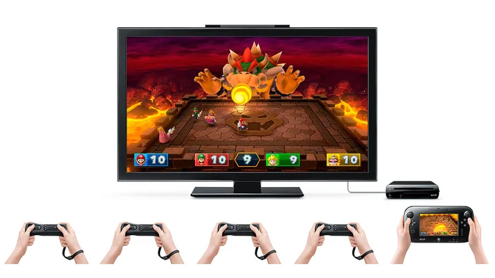 - Grab the GamePad and play as Bowser for the first time in the series. In Bowser Party mini-games, one player gets to be the fire-breathing Bowser as he tries to burn, bonk or blast other players away. Up to four players use Wii Remote controllers to cooperate and survive as they confront the Bowser player, who is using the Wii U GamePad. It's four against one, and being a party pooper has never been so much fun!