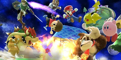 In Super Smash Bros. multiplayer games, characters from all Nintendo universes meet up in Nintendo locales to duke it out. Bring together any combination of characters and revel in the ensuing chaos that we have come to associate with the game. An action-packed fighting game, Super Smash Bros.features a ridiculous number of characters that have appeared on Nintendo platforms, from Mario to Link to Pikachu to the Wii Fit Trainer! As they square off in famous locales drawn from the rich history of Nintendo, literally anything can happen in Super Smash Bros. - and usually does. With limitless customising options, items and weapons that boggle the mind and a wealth of modes, Super Smash Bros. has truly infinite replayability. Use your chosen character’s unique attacks and special moves to damage your opponent, then hit ‘em with a smash attack to send them flying off the stage! The higher your opponent’s damage – represented as a percentage – the farther they’ll fly when launched, so pummel away until you see them steaming, then unleash your strongest smash attack and watch your target skyrocket off the stage. Take on nearby challengers in local multiplayer, or bring the battle to faraway friends and foes in online matches.