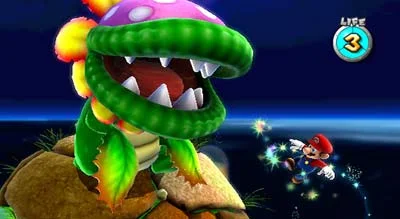 This versatility is vital to our hero as he explores the vast cosmic levels of the game. Use the Wii Remote pointer to collect Star Bits, which you can then throw at your enemies to stun them. You can also use the pointer to make the most of Co-Star Mode, in which a second player is able to manipulate the environment around you as you control Mario. This can help you manoeuvre, perform special high jumps, hold enemies and shoot Star Bits in place.