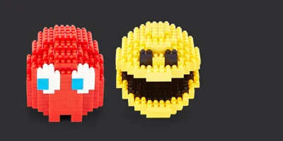 Construct your own Pac Man or Pac Man Ghost pixel by pixel with these retro looking Pixel Bricks.