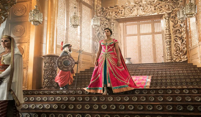 From Disney comes the thrilling and vibrant live-action adaptation of the animated classic Aladdin, the exciting tale of the charming street rat Aladdin, the self-determined Princess Jasmine and the Genie who may be the key to their future. Directed by Guy Ritchie, Aladdin features an all-star cast including Will Smith as the larger-than-life Genie, Mena Massoud as the clever scoundrel Aladdin and Naomi Scott as Jasmine, the beautiful, courageous princess of Agrabah.