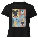 Donald Duck Mickey Mouse Pluto Goofy Tiles Women's Cropped T-Shirt - Black