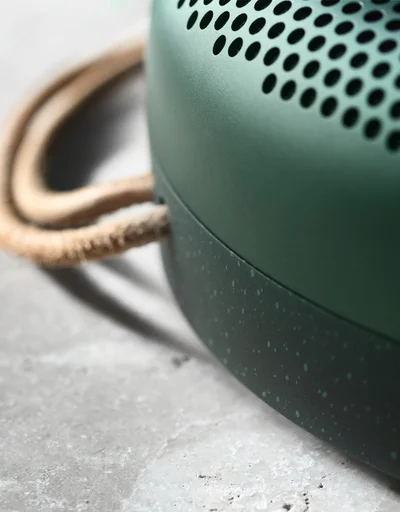 The rounded aluminium grill is not just for looks. Paired with the double-moulded polymer base, it forms a strong protective shell that makes your Beoplay A1 splash and dust resistant. Perfect for a trip outdoors.