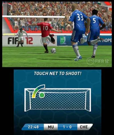 FIFA Soccer 12 is the most innovative, feature-rich and authentic 3D soccer experience on Nintendo 3DS. Take to the pitch with superstars like Real Madrid’s Kaká and Manchester United’s Wayne Rooney, and become a true marksman using all-new optional touch screen controls. Pick a spot precisely from the player’s viewpoint using the lower touch screen and then direct a shot with pinpoint accuracy.