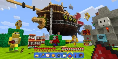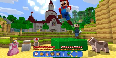 The Wii U version of Minecraft features the full game, as well as many of the most popular previously released content packs for no extra charge. The Super Mario Mash-Up Pack gives players 40 new Super Mario-themed skins, which transform the game’s characters into familiar heroes like Mario, Luigi and Princess Peach, and even troublemakers like Bowser, Wario and all seven of Bowser's minions. All the world and item textures in the game will also be redone, providing players the opportunity to create their own Super Mario-themed locations within the world of Minecraft.