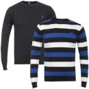 Add options to your casual wardrobe with this 55 Soul Knit 2-Pack. Includes two great designs; one simple design with a chest logo, rib hem and cuffs and a crew neck and a three-tone horizontal stripe knit also featuring the same details.
