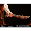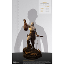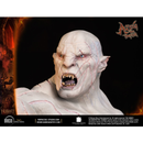 Standing triumphant at a magnificent 68cm (26,7 inches) height, Azog is posed based on the iconic scene of the battle of Azanulbizar Outside the East Gate of Moria standing atop defeated King Thror body holding his knife on his left arm and the beheaded King Thror on his right.