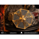Thror's body and head armor has been recreated from the original studio archives in stunning detail. Even if Thror is defeated the stains of orc blood mark his weapons and armor signifying the countless orcs that fell from his blade. Stanning detailed Thror's sword and shield accompany this masterpiece.