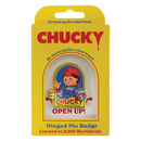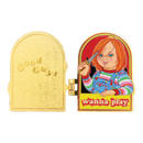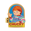 Featuring a special hinge function, the badge reveals Chucky’s sinister side, making it a truly interactive collectible piece. Created with an imitation gold plating and vibrant enamel colouring, this pin measures 45 x 33.4mm when closed, making it perfect for jackets, bags, or general display.