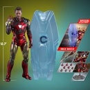 Meticulously crafted based on Tony Stark/Iron Man in the movie, the one-of-a-kind Iron Man collectible features two interchangeable head sculpts including a newly developed head sculpt with battle damage and an interchangeable helmeted head with LED-light up function. The Iron Man armour has been faithfully reproduced with red, gold and charcoal grey colouring featuring battle damage and weathering effects, LED light-up functions scattered throughout the upper body, back and Arc Reactor on chest, a battle-damaged sixth scale Nano Gauntlet as seen in the movie equipped with LED light-up function and matching interchangeable hands mounted with all six Infinity Stones, an energy blade, a pair of claw blasters and a highly elaborated rock diorama dynamic figure stand.