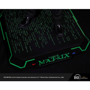 A themed base accompanies the stunning presentation. Neo stands atop a masterfully sculpted and painted coding of the Matrix. Green telephone hard lines, unique gateway to enter or exit the Matrix, surrounds the base. The front of the base features a removable magnetic Matrix Theme Plaque including the iconic Blue pill Red Pill dilemma