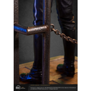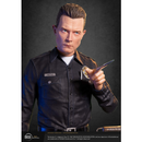 T-1000 is presented in his screen accurate high detailed dark blue LAPD uniform featuring high-definition textures and stitching lines, the LAPD badge, Austin name tag and pen on the shirt. The white strip along the seam of the trousers and hand sculpted boots completes a breathtaking hyper realistic hand sculpted costume.