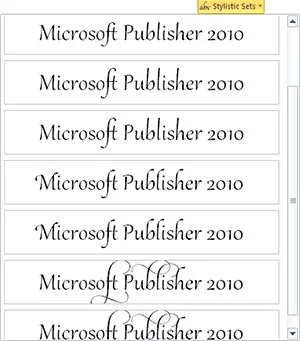 • Give your text the appearance of expert typesetting with new OpenType typography. Publisher 2010 provides support for the ligatures, stylistic sets, and other professional typography features available in many OpenType fonts. Use built-in or custom OpenType fonts to create text as impactful as images with just a couple of clicks.