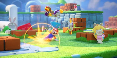 Join these eight heroes to explore a new world twisted by the mischievous Rabbids, filled with secrets and nods to classic Mario games! Outwit unpredictable enemies in dynamic turn-based combat and co-op challenges, and solve puzzles along the way. Discover a feel-good and modern combat adventure designed exclusively for the Nintendo Switch™ system, playable anywhere, anytime, with anyone.