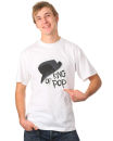 Mens King of Pop Michael Jackson T-shirt. King of Pop logo printed on a plain white cotton T-shirt.