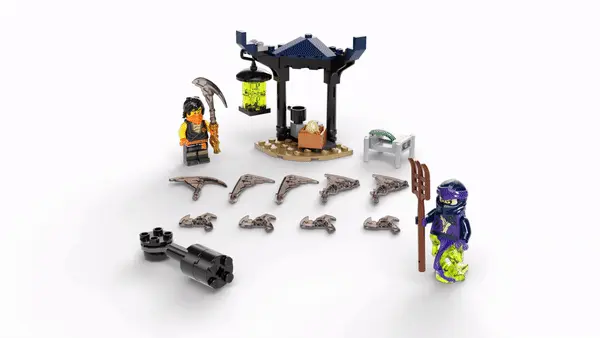This ninja battle toy features 2 minifigures: a new-for-January-2021 Cole and a Legacy Ghost Warrior from the LEGO® NINJAGO® TV series. The playset provides kids with all they need to stage fun clashes to see who wins the 4 black weapons.
