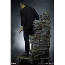 The Frankenstein Premium Format Mixed Media Figure features an incredibly detailed polystone body sculpt with two distinct portraits of the monster’s memorable visage. A neutral expression head and an emotive, grimacing expression head can be swapped out at the neckline, giving fans more ways to display the character in their collection. His cadaverous green complexion is marked with stitches, scars, and irritated red flesh, as well as his signature neck bolts and distinctive hairline. You’ve never seen something undead look so alive before!